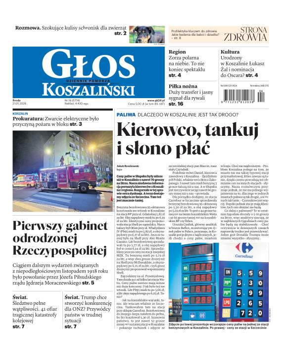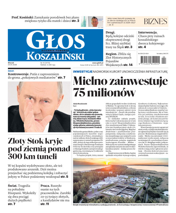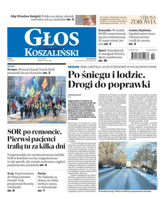Głos Dziennik Pomorza - Głos Koszaliński to największy regionalny dziennik wydarzeń i opinii ukazujący się na terenie Pomorza Zachodniego i Środkowego. Jesteśmy gazetą lokalną mocno odwołującą się do Czytelnika związanego z jego miejscem zamieszkania. Wspieramy inicjatywy lokalne, uczestniczymy w życiu regionu i jego mieszkańców. Gazeta ukazuje się sześć razy w tygodniu. W poniedziałki oferujemy magazyn Sport24 z informacjami sportowymi z regionu, z kraju i ze świata. Piątek to duży magazyn reporterski wraz z lokalną wkładką tygodnikową i magazynem telewizyjnym. W sobotę gazeta zawiera dodatkowo 16-stronicowy „Magazyn rodzinny” na który składają się teksty i atrakcyjne tematyczne poradniki z zakresu zdrowia, kulinariów, kultury i stylu życia. Kupując wydanie elektroniczne, otrzymują Państwo dostęp do dwóch miesięczników: „Ekstra Magazynu” - w którym publikujemy najciekawsze wywiady z gwiazdami oraz ciekawymi osobistościami, felietony i reportaże spośród materiałów, które ukazały się w danym miesiącu w całej Polsce oraz „Głos ma Historia” - miesięcznik przygotowywany lokalnie przez redaktorów z Pomorza Środkowego i Zachodniego, docierających do najciekawszych materiałów opisujących dzieje naszej ziemi na przestrzeni wieków, które niejednego pasjonata historii potrafią zaskoczyć i zainteresować, a w młodszych czytelnikach zaszczepić ciekawość i przywiązanie do historii własnego regionu.