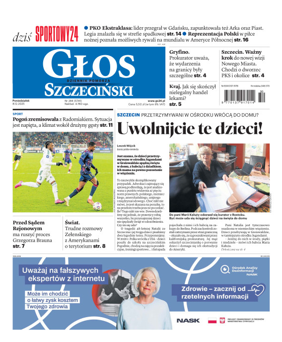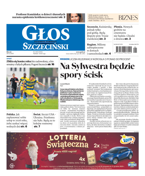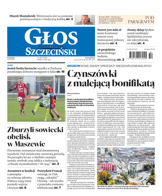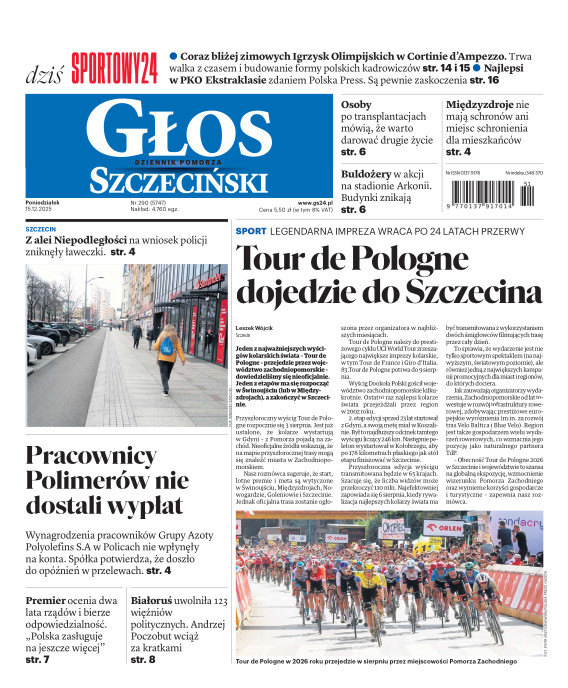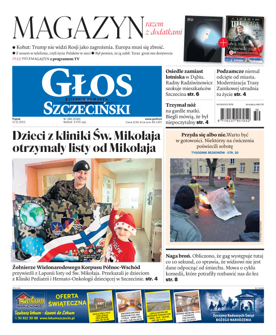 Głos Dziennik Pomorza - Głos Szczeciński to największy regionalny dziennik wydarzeń i opinii ukazujący się na terenie Pomorza Zachodniego i Środkowego. Jesteśmy gazetą lokalną mocno odwołującą się do Czytelnika związanego z jego miejscem zamieszkania. Wspieramy inicjatywy lokalne, uczestniczymy w życiu regionu i jego mieszkańców. Gazeta ukazuje się sześć razy w tygodniu. W poniedziałki oferujemy magazyn Sport24 z informacjami sportowymi z regionu, z kraju i ze świata. Piątek to duży magazyn reporterski wraz z lokalną wkładką tygodnikową i magazynem telewizyjnym. W sobotę gazeta zawiera dodatkowo 16-stronicowy „Magazyn rodzinny” na który składają się teksty i atrakcyjne tematyczne poradniki z zakresu zdrowia, kulinariów, kultury i stylu życia. Kupując wydanie elektroniczne, otrzymują Państwo dostęp do dwóch miesięczników: „Ekstra Magazynu” - w którym publikujemy najciekawsze wywiady z gwiazdami oraz ciekawymi osobistościami, felietony i reportaże spośród materiałów, które ukazały się w danym miesiącu w całej Polsce oraz „Głos ma Historia” - miesięcznik przygotowywany lokalnie przez redaktorów z Pomorza Środkowego i Zachodniego, docierających do najciekawszych materiałów opisujących dzieje naszej ziemi na przestrzeni wieków, które niejednego pasjonata historii potrafią zaskoczyć i zainteresować, a w młodszych czytelnikach zaszczepić ciekawość i przywiązanie do historii własnego regionu.