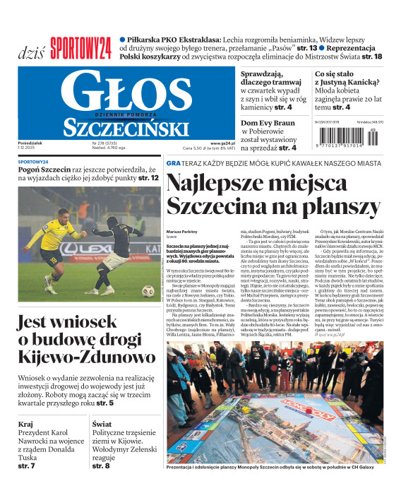Głos Dziennik Pomorza - Głos Szczeciński to największy regionalny dziennik wydarzeń i opinii ukazujący się na terenie Pomorza Zachodniego i Środkowego. Jesteśmy gazetą lokalną mocno odwołującą się do Czytelnika związanego z jego miejscem zamieszkania. Wspieramy inicjatywy lokalne, uczestniczymy w życiu regionu i jego mieszkańców. Gazeta ukazuje się sześć razy w tygodniu. W poniedziałki oferujemy magazyn Sport24 z informacjami sportowymi z regionu, z kraju i ze świata. Piątek to duży magazyn reporterski wraz z lokalną wkładką tygodnikową i magazynem telewizyjnym. W sobotę gazeta zawiera dodatkowo 16-stronicowy „Magazyn rodzinny” na który składają się teksty i atrakcyjne tematyczne poradniki z zakresu zdrowia, kulinariów, kultury i stylu życia. Kupując wydanie elektroniczne, otrzymują Państwo dostęp do dwóch miesięczników: „Ekstra Magazynu” - w którym publikujemy najciekawsze wywiady z gwiazdami oraz ciekawymi osobistościami, felietony i reportaże spośród materiałów, które ukazały się w danym miesiącu w całej Polsce oraz „Głos ma Historia” - miesięcznik przygotowywany lokalnie przez redaktorów z Pomorza Środkowego i Zachodniego, docierających do najciekawszych materiałów opisujących dzieje naszej ziemi na przestrzeni wieków, które niejednego pasjonata historii potrafią zaskoczyć i zainteresować, a w młodszych czytelnikach zaszczepić ciekawość i przywiązanie do historii własnego regionu.