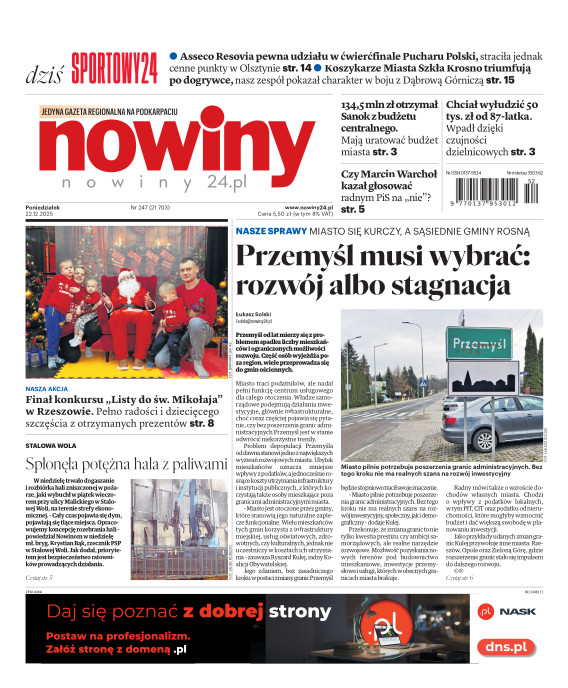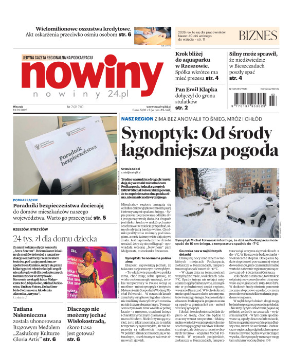 Nowiny to regionalny dziennik o charakterze informacyjno-publicystycznym. Jesteśmy absolutnym liderem na swoim rynku pod względem czytelnictwa i sprzedaży. Gazeta jest postrzegana, jako najbardziej opiniotwórczy dziennik lokalny i ceniony nośnik reklamy. Lokalność, wiarygodność, użyteczność - to najważniejsze cechy, które opisują nasz charakter. Swym zasięgiem obejmujemy województwo podkarpackie i obrzeża województw: lubelskiego, świętokrzyskiego i małopolskiego. E- wydanie Nowin pozwala na prosty, szybki i wygodny dostęp do bieżących i archiwalnych numerów dziennika.