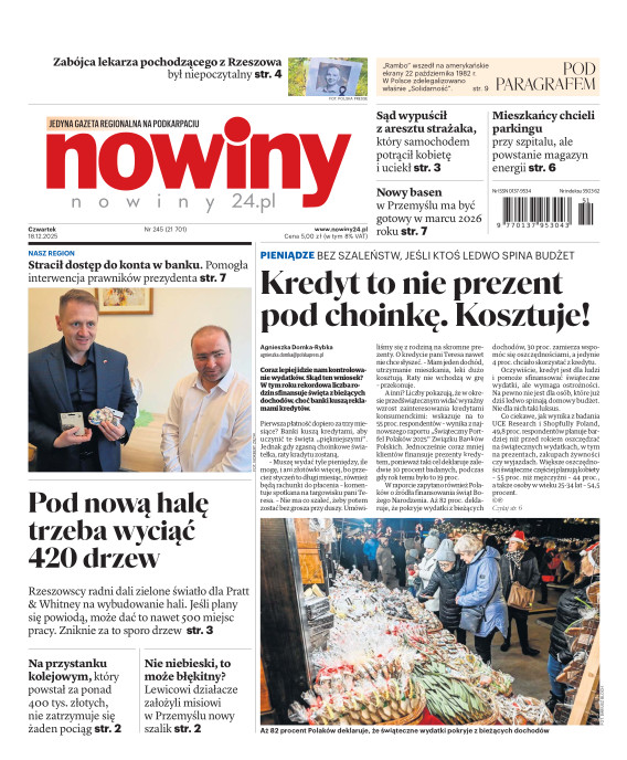 Nowiny to regionalny dziennik o charakterze informacyjno-publicystycznym. Jesteśmy absolutnym liderem na swoim rynku pod względem czytelnictwa i sprzedaży. Gazeta jest postrzegana, jako najbardziej opiniotwórczy dziennik lokalny i ceniony nośnik reklamy. Lokalność, wiarygodność, użyteczność - to najważniejsze cechy, które opisują nasz charakter. Swym zasięgiem obejmujemy województwo podkarpackie i obrzeża województw: lubelskiego, świętokrzyskiego i małopolskiego. E- wydanie Nowin pozwala na prosty, szybki i wygodny dostęp do bieżących i archiwalnych numerów dziennika.