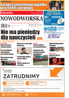 Gazeta Nowodworska ukazuje się co wtorek na terenie powiatu nowodworskiego. Powstała w październiku 2006 roku i ukazuje się nieprzerwanie do dziś. Zasięgiem obejmuje sześć gmin powiatu nowodworskiego: Nowy Dwór Mazowiecki, Nasielsk, Zakroczym, Czosnów, Pomiechówek i Leoncin oraz część powiatu legionowskiego – gminy Jabłonna. Jest najbardziej poczytnym i opiniotwórczym tygodnikiem na prasowym rynku powiatu nowodworskiego.