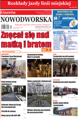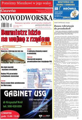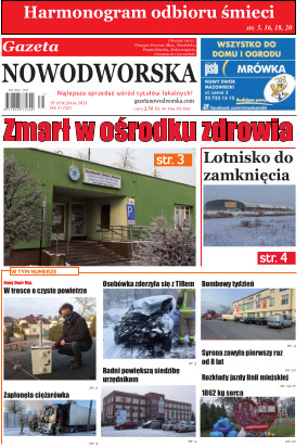 Gazeta Nowodworska ukazuje się co wtorek na terenie powiatu nowodworskiego. Powstała w październiku 2006 roku i ukazuje się nieprzerwanie do dziś. Zasięgiem obejmuje sześć gmin powiatu nowodworskiego: Nowy Dwór Mazowiecki, Nasielsk, Zakroczym, Czosnów, Pomiechówek i Leoncin oraz część powiatu legionowskiego – gminy Jabłonna. Jest najbardziej poczytnym i opiniotwórczym tygodnikiem na prasowym rynku powiatu nowodworskiego.