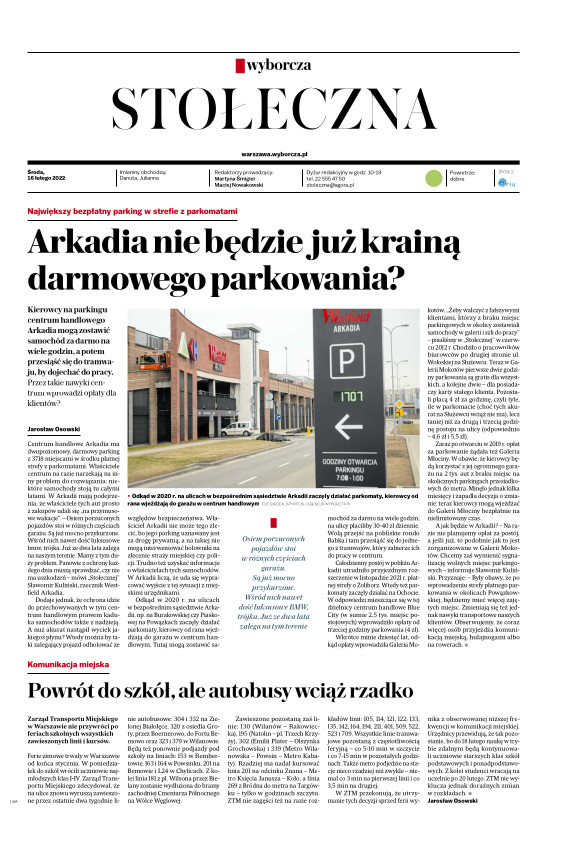 eprasa.pl ▸ Gazeta Wyborcza (wyd. Stołeczna) ▸ Gazeta Wyborcza (wyd. Stołeczna) 38 (16.02.2022)