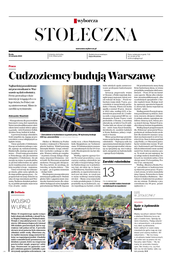eprasa.pl ▸ Gazeta Wyborcza (wyd. Stołeczna) ▸ Gazeta Wyborcza (wyd. Stołeczna) 189 (16.08.2023)