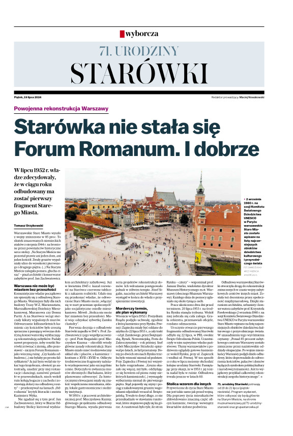 Dodatki: Warszawa, TV, 71. urodziny Starówki, Południe Polski zaprasza