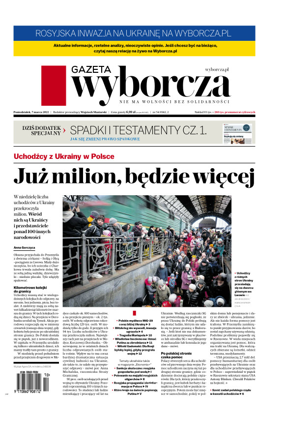 Gazeta Wyborcza (wyd. Stołeczna) 54 (07.03.2022)