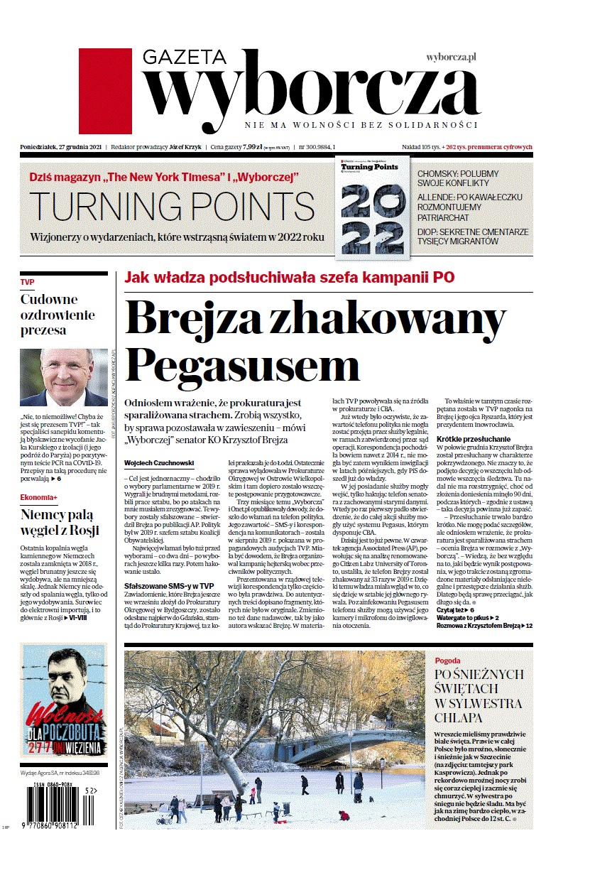 Gazeta Wyborcza (wyd. Stołeczna) 300 (27.12.2021)