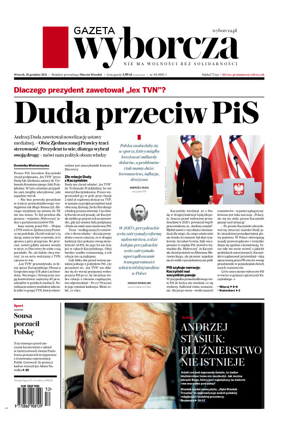 Gazeta Wyborcza (wyd. Stołeczna) 301 (28.12.2021)