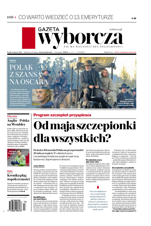 Gazeta Wyborcza (wyd. Stołeczna) 75 (31.03.2021)