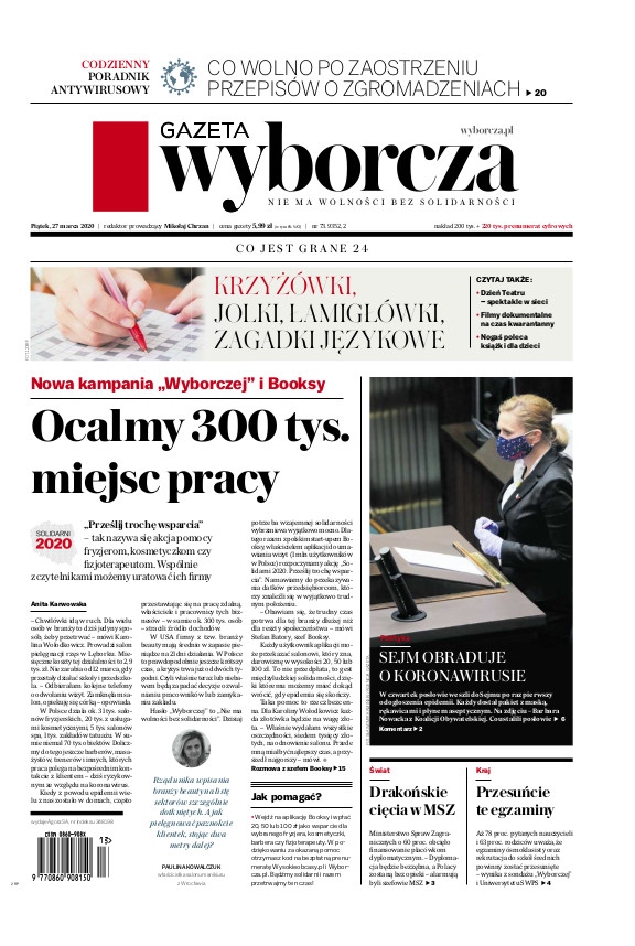 Gazeta Wyborcza (wyd. Stołeczna) 73 (27.03.2020)