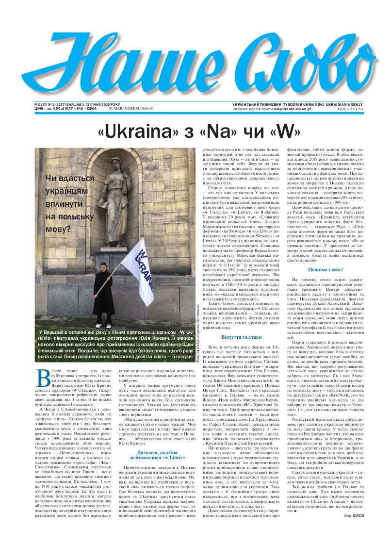 УКРАЇНСьКИЙ ТИЖНЕВИК * Tygodnik Ukraiński * Ukrainian Weekly