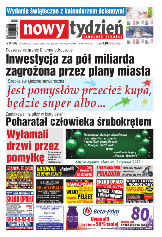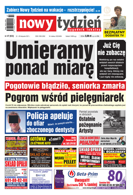 Nowy Tydzień - to sieć tygodników lokalnych ukazujących się na terenie powiatów chełmskiego, włodawskiego, krasnostawskiego oraz na terenie miasta Lublin i Świdnik. Gazetę opracowuje profesjonalny zespół doświadczonych dziennikarzy i grafików, którzy tworząc Nowy Tydzień, informują lokalną społeczność o wszystkich ważnych wydarzeniach z życia jej miast i powiatów Tygodnik dociera wszędzie tam, gdzie potrzebują tego jego czytelnicy. Jest zawsze najbliżej spraw lokalnych społeczności i właśnie na tym buduje swój sukces. Na jego stronach poza informacjami z Chełma, Włodawy, Krasnegostawu, Lublina oraz Świdnika, Czytelnicy znajdą kolumny sportowe, motoryzacyjne, kulturalne, studenckie, medyczne i ogłoszeniowe. Dodatkowym atutem jest kolorowy dodatek telewizyjny stanowiący integralną część wszystkich wydań Nowego Tygodnia.