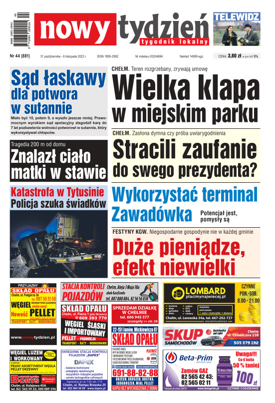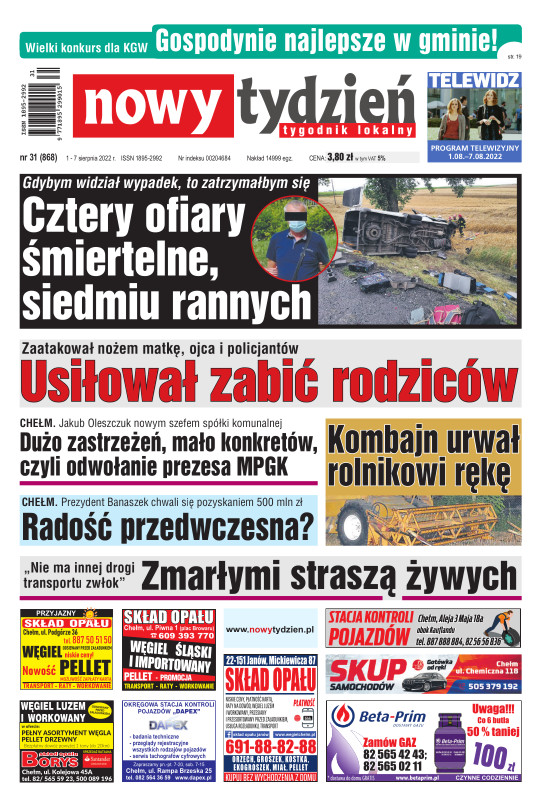 Nowy Tydzień - to sieć tygodników lokalnych ukazujących się na terenie powiatów chełmskiego, włodawskiego, krasnostawskiego oraz na terenie miasta Lublin i Świdnik. Gazetę opracowuje profesjonalny zespół doświadczonych dziennikarzy i grafików, którzy tworząc Nowy Tydzień, informują lokalną społeczność o wszystkich ważnych wydarzeniach z życia jej miast i powiatów Tygodnik dociera wszędzie tam, gdzie potrzebują tego jego czytelnicy. Jest zawsze najbliżej spraw lokalnych społeczności i właśnie na tym buduje swój sukces. Na jego stronach poza informacjami z Chełma, Włodawy, Krasnegostawu, Lublina oraz Świdnika, Czytelnicy znajdą kolumny sportowe, motoryzacyjne, kulturalne, studenckie, medyczne i ogłoszeniowe. Dodatkowym atutem jest kolorowy dodatek telewizyjny stanowiący integralną część wszystkich wydań Nowego Tygodnia.