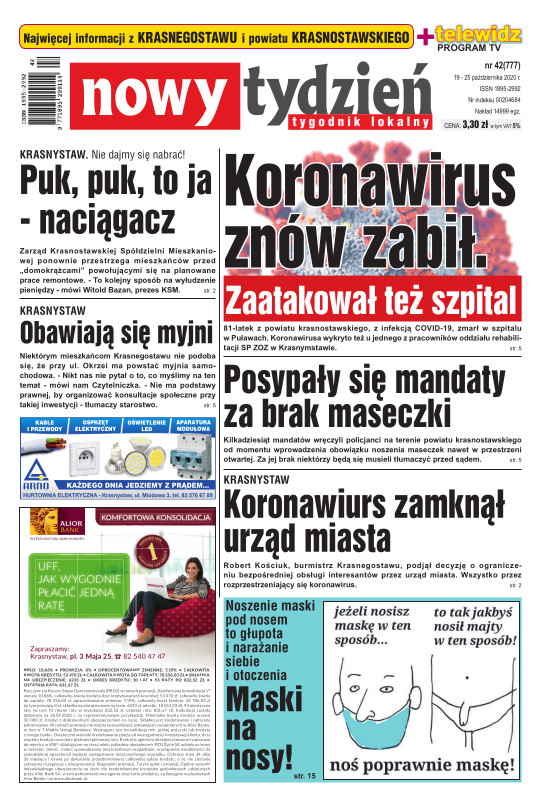Nowy Tydzień - to sieć tygodników lokalnych ukazujących się na terenie powiatów chełmskiego, włodawskiego, krasnostawskiego oraz na terenie miasta Lublin i Świdnik. Gazetę opracowuje profesjonalny zespół doświadczonych dziennikarzy i grafików, którzy tworząc Nowy Tydzień, informują lokalną społeczność o wszystkich ważnych wydarzeniach z życia jej miast i powiatów Tygodnik dociera wszędzie tam, gdzie potrzebują tego jego czytelnicy. Jest zawsze najbliżej spraw lokalnych społeczności i właśnie na tym buduje swój sukces. Na jego stronach poza informacjami z Chełma, Włodawy, Krasnegostawu, Lublina oraz Świdnika, Czytelnicy znajdą kolumny sportowe, motoryzacyjne, kulturalne, studenckie, medyczne i ogłoszeniowe. Dodatkowym atutem jest kolorowy dodatek telewizyjny stanowiący integralną część wszystkich wydań Nowego Tygodnia.