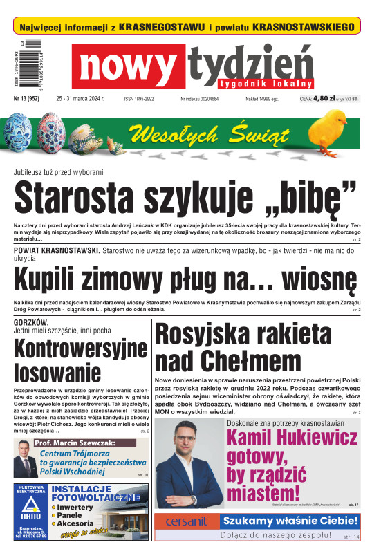 Nowy Tydzień - to sieć tygodników lokalnych ukazujących się na terenie powiatów chełmskiego, włodawskiego, krasnostawskiego oraz na terenie miasta Lublin i Świdnik. Gazetę opracowuje profesjonalny zespół doświadczonych dziennikarzy i grafików, którzy tworząc Nowy Tydzień, informują lokalną społeczność o wszystkich ważnych wydarzeniach z życia jej miast i powiatów Tygodnik dociera wszędzie tam, gdzie potrzebują tego jego czytelnicy. Jest zawsze najbliżej spraw lokalnych społeczności i właśnie na tym buduje swój sukces. Na jego stronach poza informacjami z Chełma, Włodawy, Krasnegostawu, Lublina oraz Świdnika, Czytelnicy znajdą kolumny sportowe, motoryzacyjne, kulturalne, studenckie, medyczne i ogłoszeniowe. Dodatkowym atutem jest kolorowy dodatek telewizyjny stanowiący integralną część wszystkich wydań Nowego Tygodnia.