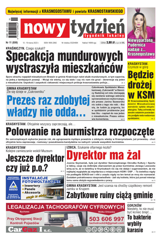 Nowy Tydzień - to sieć tygodników lokalnych ukazujących się na terenie powiatów chełmskiego, włodawskiego, krasnostawskiego oraz na terenie miasta Lublin i Świdnik. Gazetę opracowuje profesjonalny zespół doświadczonych dziennikarzy i grafików, którzy tworząc Nowy Tydzień, informują lokalną społeczność o wszystkich ważnych wydarzeniach z życia jej miast i powiatów Tygodnik dociera wszędzie tam, gdzie potrzebują tego jego czytelnicy. Jest zawsze najbliżej spraw lokalnych społeczności i właśnie na tym buduje swój sukces. Na jego stronach poza informacjami z Chełma, Włodawy, Krasnegostawu, Lublina oraz Świdnika, Czytelnicy znajdą kolumny sportowe, motoryzacyjne, kulturalne, studenckie, medyczne i ogłoszeniowe. Dodatkowym atutem jest kolorowy dodatek telewizyjny stanowiący integralną część wszystkich wydań Nowego Tygodnia.