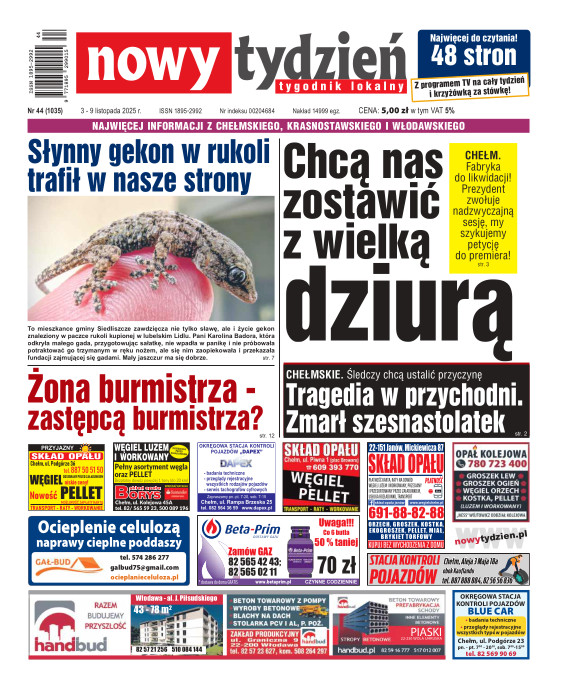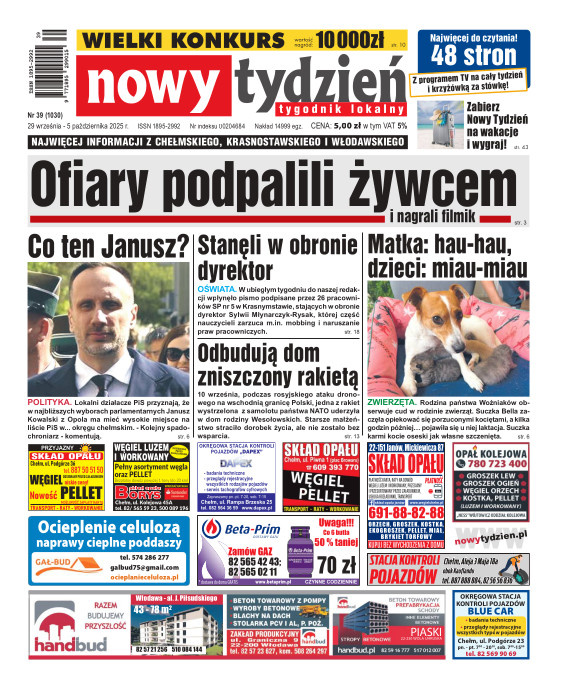 Nowy Tydzień - to sieć tygodników lokalnych ukazujących się na terenie powiatów chełmskiego, włodawskiego, krasnostawskiego oraz na terenie miasta Lublin i Świdnik. Gazetę opracowuje profesjonalny zespół doświadczonych dziennikarzy i grafików, którzy tworząc Nowy Tydzień, informują lokalną społeczność o wszystkich ważnych wydarzeniach z życia jej miast i powiatów Tygodnik dociera wszędzie tam, gdzie potrzebują tego jego czytelnicy. Jest zawsze najbliżej spraw lokalnych społeczności i właśnie na tym buduje swój sukces. Na jego stronach poza informacjami z Chełma, Włodawy, Krasnegostawu, Lublina oraz Świdnika, Czytelnicy znajdą kolumny sportowe, motoryzacyjne, kulturalne, studenckie, medyczne i ogłoszeniowe. Dodatkowym atutem jest kolorowy dodatek telewizyjny stanowiący integralną część wszystkich wydań Nowego Tygodnia.