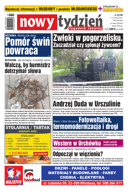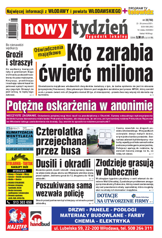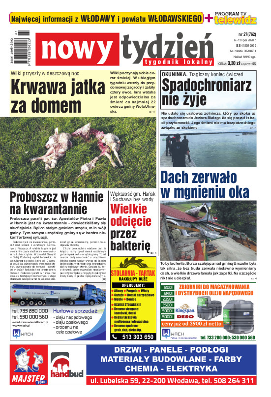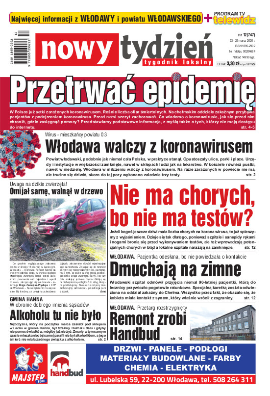 Nowy Tydzień - to sieć tygodników lokalnych ukazujących się na terenie powiatów chełmskiego, włodawskiego, krasnostawskiego oraz na terenie miasta Lublin i Świdnik. Gazetę opracowuje profesjonalny zespół doświadczonych dziennikarzy i grafików, którzy tworząc Nowy Tydzień, informują lokalną społeczność o wszystkich ważnych wydarzeniach z życia jej miast i powiatów Tygodnik dociera wszędzie tam, gdzie potrzebują tego jego czytelnicy. Jest zawsze najbliżej spraw lokalnych społeczności i właśnie na tym buduje swój sukces. Na jego stronach poza informacjami z Chełma, Włodawy, Krasnegostawu, Lublina oraz Świdnika, Czytelnicy znajdą kolumny sportowe, motoryzacyjne, kulturalne, studenckie, medyczne i ogłoszeniowe. Dodatkowym atutem jest kolorowy dodatek telewizyjny stanowiący integralną część wszystkich wydań Nowego Tygodnia.