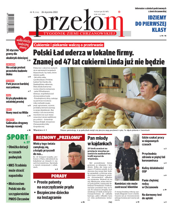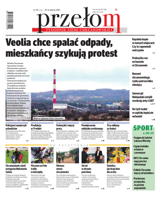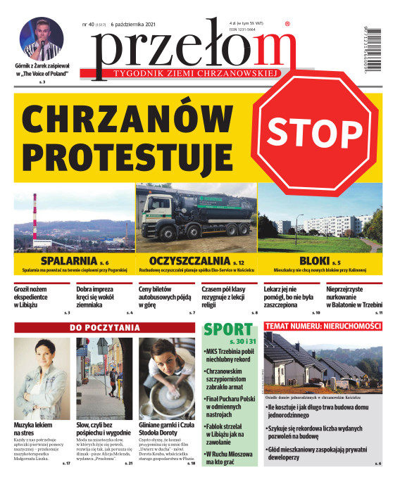 „Przełom” jest jedną z najlepszych i największych gazet lokalnych w Polsce. Powstał 16 września 1990 r. i ukazuje się nieprzerwanie do dziś. Zasięgiem obejmuje obecnie pięć gmin powiatu chrzanowskiego: Alwernię, Babice, Chrzanów, Libiąż i Trzebinię oraz gminę Krzeszowice w powiecie krakowskim i gminę Chełmek w powiecie oświęcimskim. W 1994 r. zdobył I nagrodę IDEE (Fundacji na Rzecz Demokracji w Europie Wschodniej, a w 2000 r. tytuł gazety 10-lecia sygnowany przez premiera rządu RP i ministra kultury. Tytuł dwukrotnie nagradzany przez Narodowy Fundusz Ochrony Środowiska, w 2000 r. zdobył I nagrodę w konkursie dla gazet mających największy wpływ na kształtowanie świadomości ekologicznej. * E-wydanie online (flash, html, html5)