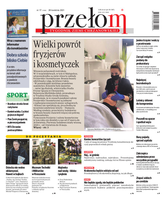 „Przełom” jest jedną z najlepszych i największych gazet lokalnych w Polsce. Powstał 16 września 1990 r. i ukazuje się nieprzerwanie do dziś. Zasięgiem obejmuje obecnie pięć gmin powiatu chrzanowskiego: Alwernię, Babice, Chrzanów, Libiąż i Trzebinię oraz gminę Krzeszowice w powiecie krakowskim i gminę Chełmek w powiecie oświęcimskim. W 1994 r. zdobył I nagrodę IDEE (Fundacji na Rzecz Demokracji w Europie Wschodniej, a w 2000 r. tytuł gazety 10-lecia sygnowany przez premiera rządu RP i ministra kultury. Tytuł dwukrotnie nagradzany przez Narodowy Fundusz Ochrony Środowiska, w 2000 r. zdobył I nagrodę w konkursie dla gazet mających największy wpływ na kształtowanie świadomości ekologicznej. * E-wydanie online (flash, html, html5)
