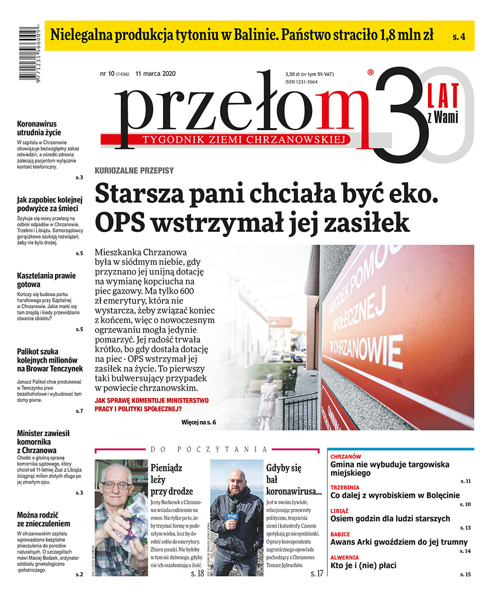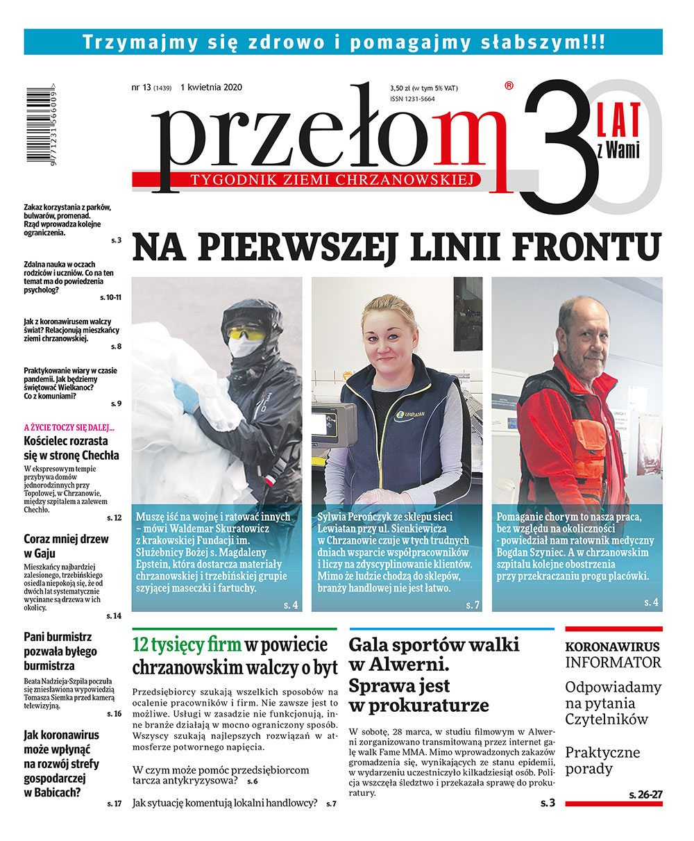 „Przełom” jest jedną z najlepszych i największych gazet lokalnych w Polsce. Powstał 16 września 1990 r. i ukazuje się nieprzerwanie do dziś. Zasięgiem obejmuje obecnie pięć gmin powiatu chrzanowskiego: Alwernię, Babice, Chrzanów, Libiąż i Trzebinię oraz gminę Krzeszowice w powiecie krakowskim i gminę Chełmek w powiecie oświęcimskim. W 1994 r. zdobył I nagrodę IDEE (Fundacji na Rzecz Demokracji w Europie Wschodniej, a w 2000 r. tytuł gazety 10-lecia sygnowany przez premiera rządu RP i ministra kultury. Tytuł dwukrotnie nagradzany przez Narodowy Fundusz Ochrony Środowiska, w 2000 r. zdobył I nagrodę w konkursie dla gazet mających największy wpływ na kształtowanie świadomości ekologicznej. * E-wydanie online (flash, html, html5)