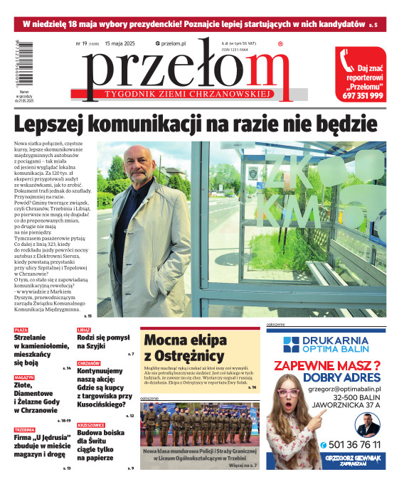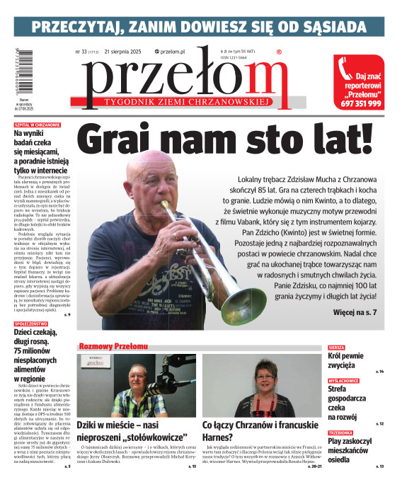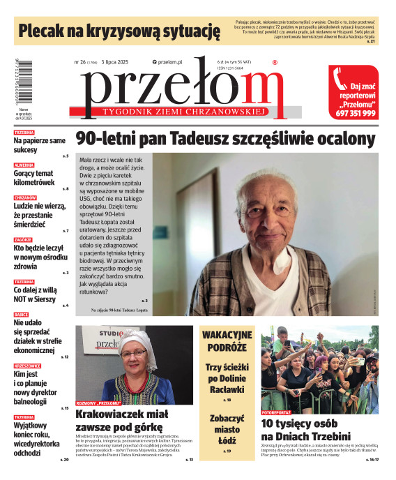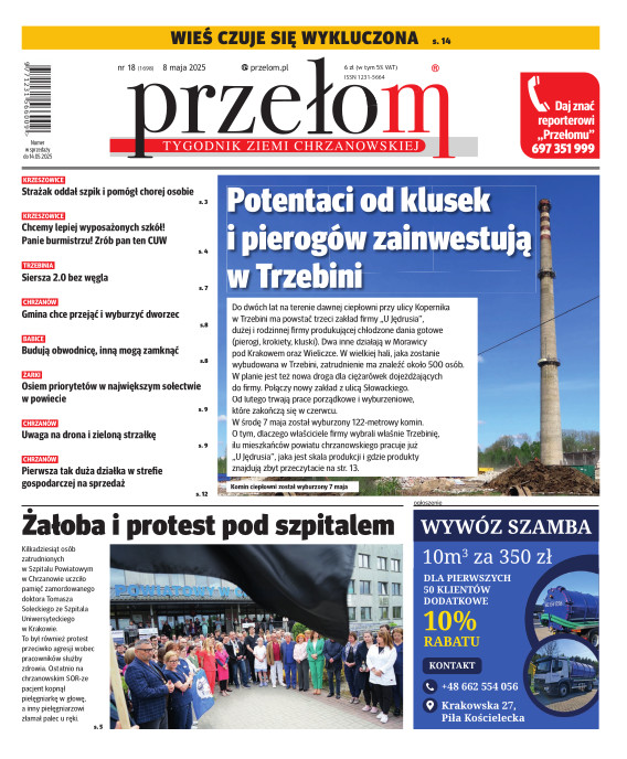 „Przełom” jest jedną z najlepszych i największych gazet lokalnych w Polsce. Powstał 16 września 1990 r. i ukazuje się nieprzerwanie do dziś. Zasięgiem obejmuje obecnie pięć gmin powiatu chrzanowskiego: Alwernię, Babice, Chrzanów, Libiąż i Trzebinię oraz gminę Krzeszowice w powiecie krakowskim i gminę Chełmek w powiecie oświęcimskim. W 1994 r. zdobył I nagrodę IDEE (Fundacji na Rzecz Demokracji w Europie Wschodniej, a w 2000 r. tytuł gazety 10-lecia sygnowany przez premiera rządu RP i ministra kultury. Tytuł dwukrotnie nagradzany przez Narodowy Fundusz Ochrony Środowiska, w 2000 r. zdobył I nagrodę w konkursie dla gazet mających największy wpływ na kształtowanie świadomości ekologicznej. * E-wydanie online (flash, html, html5)