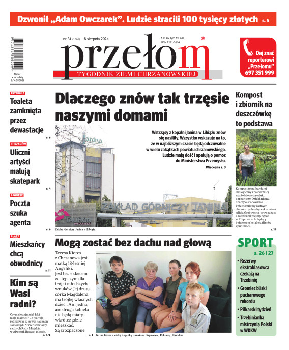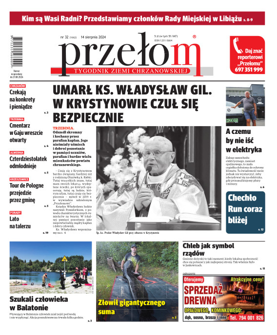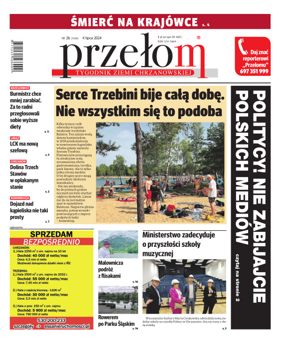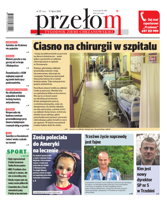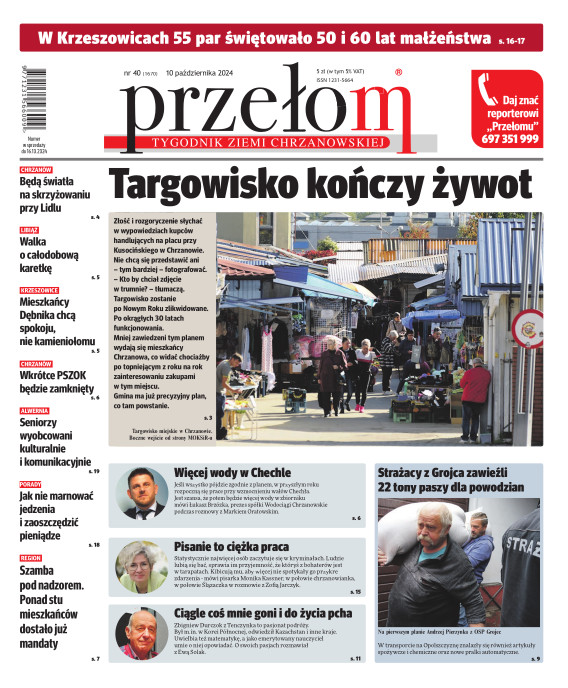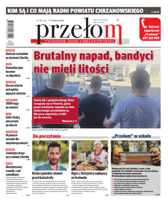„Przełom” jest jedną z najlepszych i największych gazet lokalnych w Polsce. Powstał 16 września 1990 r. i ukazuje się nieprzerwanie do dziś. Zasięgiem obejmuje obecnie pięć gmin powiatu chrzanowskiego: Alwernię, Babice, Chrzanów, Libiąż i Trzebinię oraz gminę Krzeszowice w powiecie krakowskim i gminę Chełmek w powiecie oświęcimskim. W 1994 r. zdobył I nagrodę IDEE (Fundacji na Rzecz Demokracji w Europie Wschodniej, a w 2000 r. tytuł gazety 10-lecia sygnowany przez premiera rządu RP i ministra kultury. Tytuł dwukrotnie nagradzany przez Narodowy Fundusz Ochrony Środowiska, w 2000 r. zdobył I nagrodę w konkursie dla gazet mających największy wpływ na kształtowanie świadomości ekologicznej. * E-wydanie online (flash, html, html5)