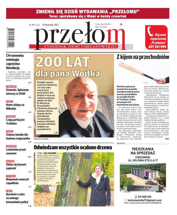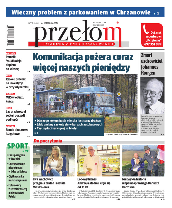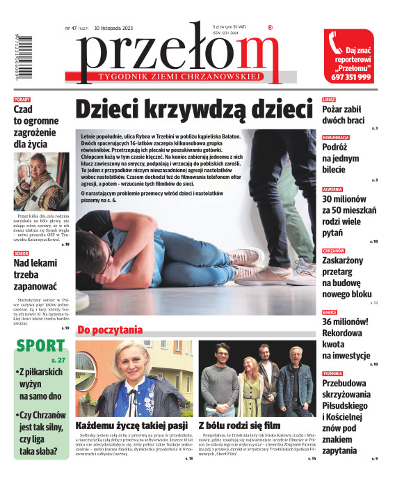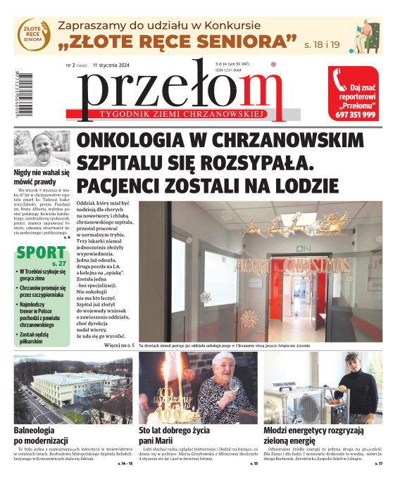 „Przełom” jest jedną z najlepszych i największych gazet lokalnych w Polsce. Powstał 16 września 1990 r. i ukazuje się nieprzerwanie do dziś. Zasięgiem obejmuje obecnie pięć gmin powiatu chrzanowskiego: Alwernię, Babice, Chrzanów, Libiąż i Trzebinię oraz gminę Krzeszowice w powiecie krakowskim i gminę Chełmek w powiecie oświęcimskim. W 1994 r. zdobył I nagrodę IDEE (Fundacji na Rzecz Demokracji w Europie Wschodniej, a w 2000 r. tytuł gazety 10-lecia sygnowany przez premiera rządu RP i ministra kultury. Tytuł dwukrotnie nagradzany przez Narodowy Fundusz Ochrony Środowiska, w 2000 r. zdobył I nagrodę w konkursie dla gazet mających największy wpływ na kształtowanie świadomości ekologicznej. * E-wydanie online (flash, html, html5)