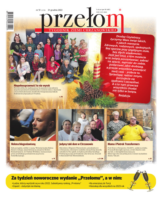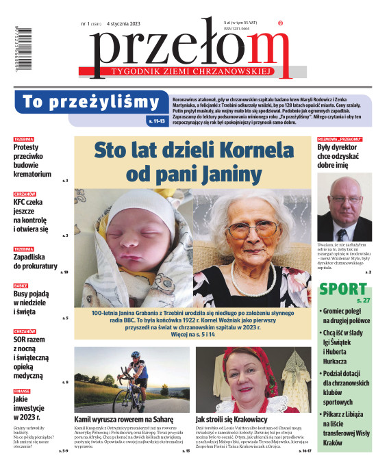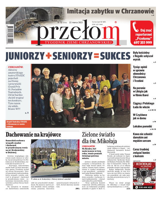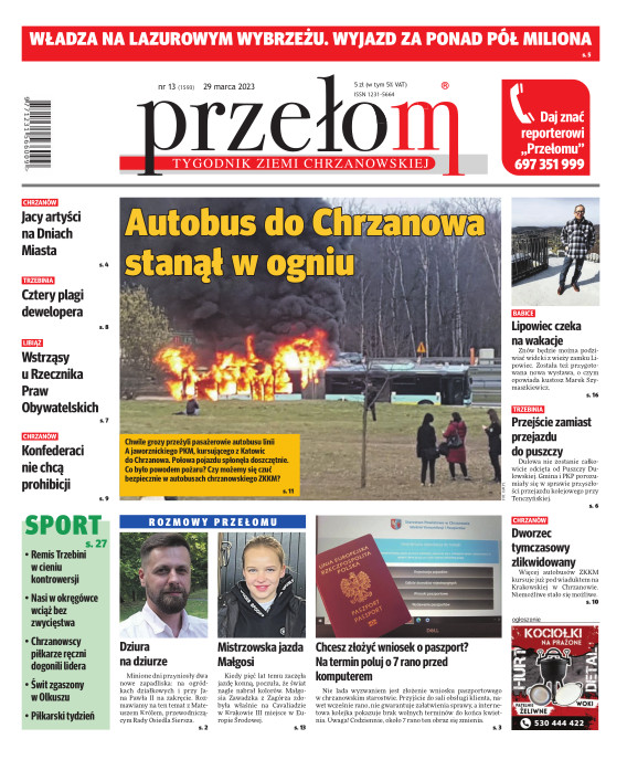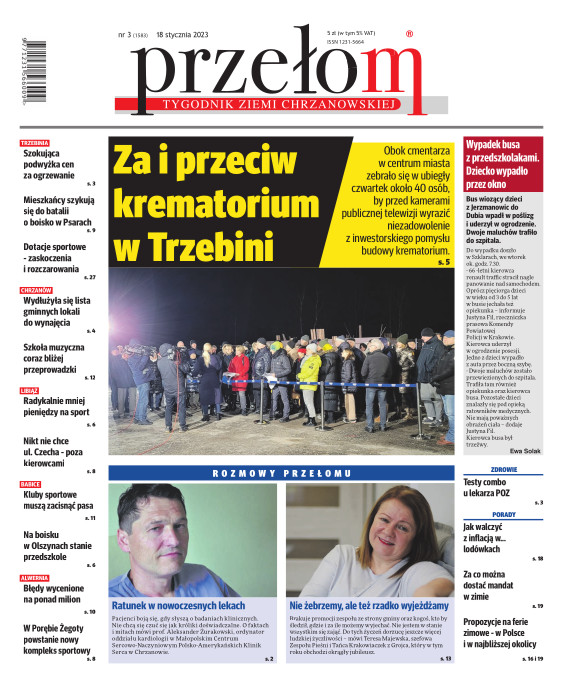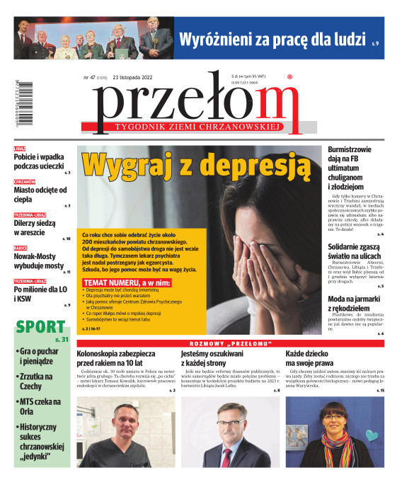 „Przełom” jest jedną z najlepszych i największych gazet lokalnych w Polsce. Powstał 16 września 1990 r. i ukazuje się nieprzerwanie do dziś. Zasięgiem obejmuje obecnie pięć gmin powiatu chrzanowskiego: Alwernię, Babice, Chrzanów, Libiąż i Trzebinię oraz gminę Krzeszowice w powiecie krakowskim i gminę Chełmek w powiecie oświęcimskim. W 1994 r. zdobył I nagrodę IDEE (Fundacji na Rzecz Demokracji w Europie Wschodniej, a w 2000 r. tytuł gazety 10-lecia sygnowany przez premiera rządu RP i ministra kultury. Tytuł dwukrotnie nagradzany przez Narodowy Fundusz Ochrony Środowiska, w 2000 r. zdobył I nagrodę w konkursie dla gazet mających największy wpływ na kształtowanie świadomości ekologicznej. * E-wydanie online (flash, html, html5)