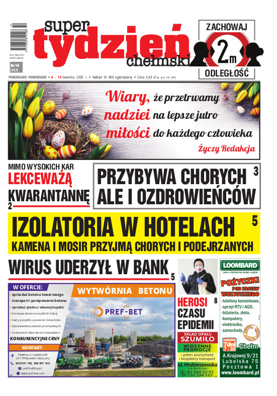 Super Tydzień Chełmski jest liderem na rynku tygodników lokalnych notującym ciągły wzrost sprzedaży egzemplarzowej i powierzchni reklamowej. Naszą misją jest dostarczanie mieszkańcom naszego regionu najświeższych, ciekawych i rzetelnych informacji. Nasz tygodnik zawsze stoi po stronie Czytelników, broni ich interesów, pomaga w rozwiązywaniu problemów. Jest niezawodnym partnerem w akcjach służącym mieszkańcom regionu. Jest sprawdzonym i skutecznym nośnikiem reklamy. Nasz tygodnik ukazuje się na terenie miast: Chełm, Krasnystaw, Włodawa, Rejowiec Fabryczny oraz we wszystkich miejscowościach w obrębie trzech powiatów: chełmskiego, krasnostawskiego i włodawskiego. By być bliżej Czytelnika i jego problemów oraz szybciej interweniować w jego sprawach wydajemy mutacje tygodnika w Krasnymstawie i powiecie krasnostawskim oraz Włodawie i powiecie włodawskim.