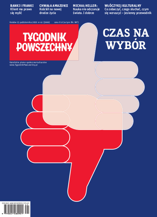 „Tygodnik Powszechny” – Tygodnik suwerenny dzięki Czytelnikom. Rośniemy z Wami! „Kogo męczy jałowa wojna polsko-polska, kto chce się dać zaskoczyć, zamiast czytać dzień w dzień i tydzień w tydzień ten sam tekst utwierdzający go w jego jedynie słusznych poglądach na wiarę, politykę, ekonomię i Pana Boga – niech sięga po „Tygodnik”. Na zbudowaniu takiego miejsca wytchnienia i zaskoczenia czytelniczek i czytelników najbardziej nam zależy” - Piotr Mucharski, redaktor naczelny Pełen obraz tygodnia: o kuluarach wielkiej polityki pisze Karolina Lewicka, Polskę i Polaków w reportażu i rozmowach opisują Anna Goc, Krzysztof Story i Przemysław Wilczyński, stan stosunków polsko-żydowskich monitorują Michał Okoński, a z Izraela – Karolina Przewrocka-Aderet. Nieoficjalny dział przyrodniczy to teksty Łukasza Kwiatka o małpach, Stanisława Łubieńskiego o ptakach, Adama Robińskiego o pszczołach, fokach i łosiach, i Michała Książka o drzewach, lasach i puszczach. Satyrycznych rysunków komentujących aktualności dostarcza Bartosz Minkiewicz, autor komiksów „Wilq”. Nieoczywiste analizy na przecięciu polityki, religii i popkultury tworzy Marcin Napiórkowski. Najnowsze seriale odkrywają Jakub Majmurek i Piotr Tarczyński, o książkach piszą Monika Ochędowska, Magdalena Nowicka-Franczak, Wojciech Engelking czy Marek Bieńczyk. Wśród felietonistów są Andrzej Stasiuk, Dorota Masłowska, Jacek Podsiadło, Hanna Krall, felietony społeczno-kulinarne pisze Paweł Bravo. Co tydzień najważniejsze filmy recenzuje nagradzana krytyczka Anita Piotrowska. Piszemy też o muzyce współczesnej i poważnej, o teatrze i operze, o najgorętszych wydarzeniach i sporach. Wielokrotnie nagradzany dział zagraniczny to korespondenci z całego świata: jesteśmy m.in. w Afryce, Iraku i Turcji, nasz dziennikarz jako pierwszy z polskich mediów był na Lampedusie, od początku towarzyszymy wydarzeniom na Ukrainie, jesteśmy też m.in. w Nowym Jorku i Waszyngtonie, w Izraelu i Niemczech, z Bangladeszu piszemy o czystkach etnicznych, a z Wenezueli o gospodarczym krachu. Członkiem działu Świat jest pisarz i reporter Wojciech Jagielski. „Tygodnik Powszechny” to katolicyzm otwarty. To najważniejsze informacje i analizy o Kościele papieża Franciszka. Duchowość, medytacja, stosunki państwo-Kościół – nie unikamy żadnego tematu. Piszemy o reakcjach Kościoła wobec skandali związanych z molestowaniem seksualnym i o świecie wobec Kościoła – wśród autorów Piotr Sikora, ks. Adam Boniecki, ks. Michał Heller, Zuzanna Radzik, Edward Augustyn. „Tygodnik Powszechny”: weź, czytaj!