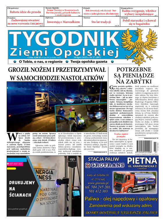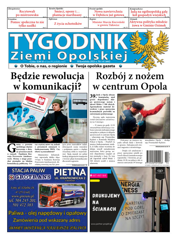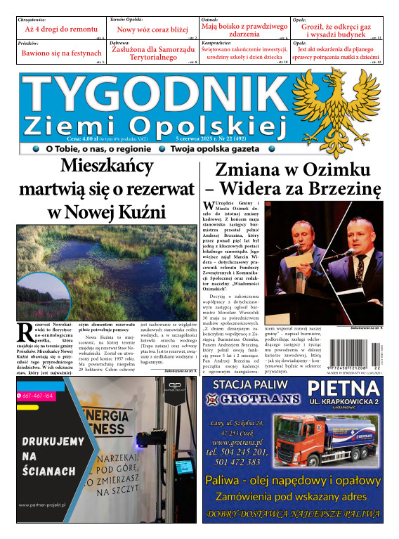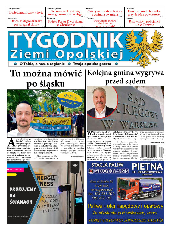 Tygodnik Ziemi OpolskiejGazeta „TYGODNIK Ziemi Opolskiej”- ukazuje się na terenie gmin powiatu opolskiego. To lider wśród tygodników lokalnych w powiecie opolskim. Ukazuje się w każdy czwartek i opisuje wydarzenia związane z miastem Opole jak i powiatem opolskim. Dostępna jest w Opolu oraz gminach powiatu opolskiego. Nakład TZO wynosi ponad 4400 szt., sprzedaż oscyluje w granicach 80-93 %. Grupa docelowa to 150 tys. mieszkańców tychże gmin. Wraz z gazetą aktywny jest również portal www.tygodnikziemiopolskiej.info