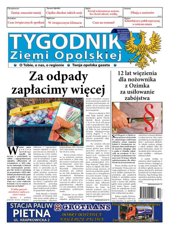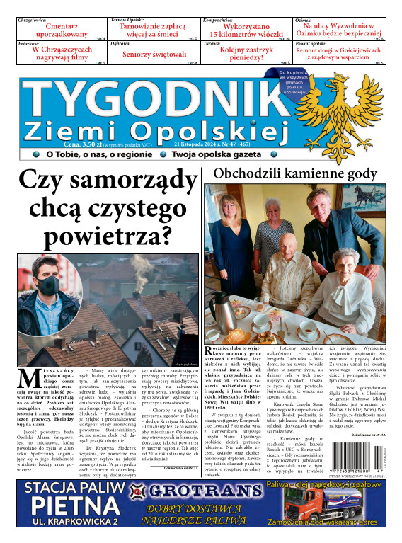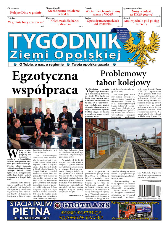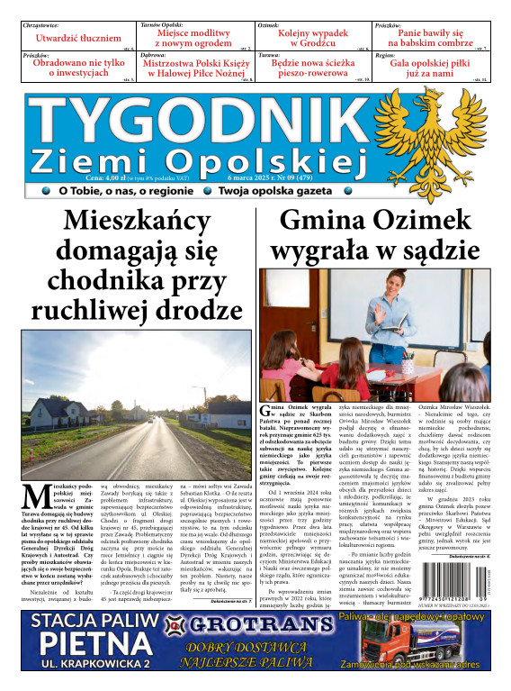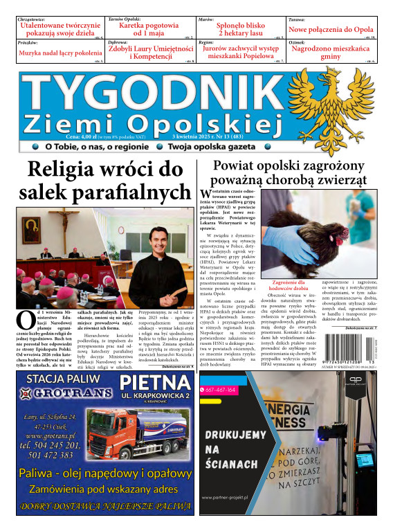 Tygodnik Ziemi OpolskiejGazeta „TYGODNIK Ziemi Opolskiej”- ukazuje się na terenie gmin powiatu opolskiego. To lider wśród tygodników lokalnych w powiecie opolskim. Ukazuje się w każdy czwartek i opisuje wydarzenia związane z miastem Opole jak i powiatem opolskim. Dostępna jest w Opolu oraz gminach powiatu opolskiego. Nakład TZO wynosi ponad 4400 szt., sprzedaż oscyluje w granicach 80-93 %. Grupa docelowa to 150 tys. mieszkańców tychże gmin. Wraz z gazetą aktywny jest również portal www.tygodnikziemiopolskiej.info