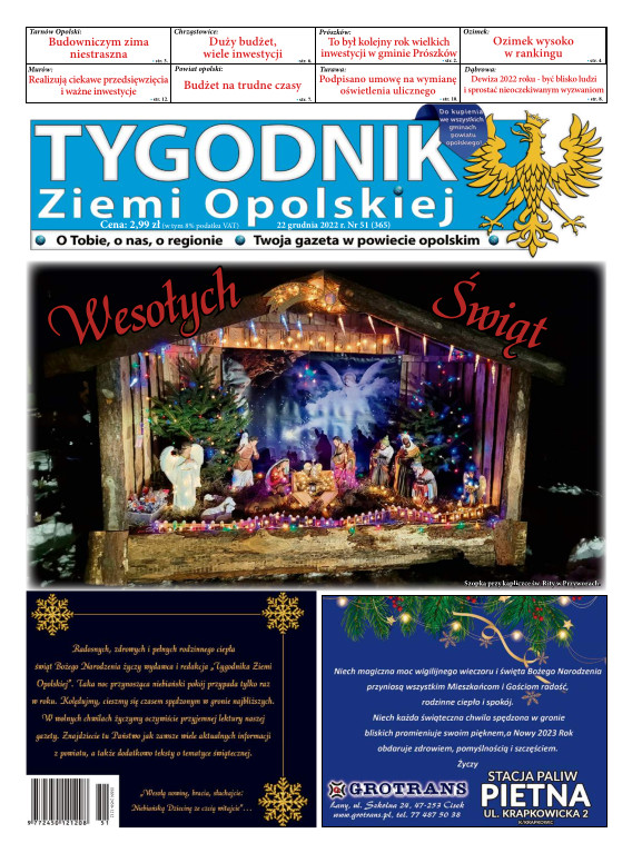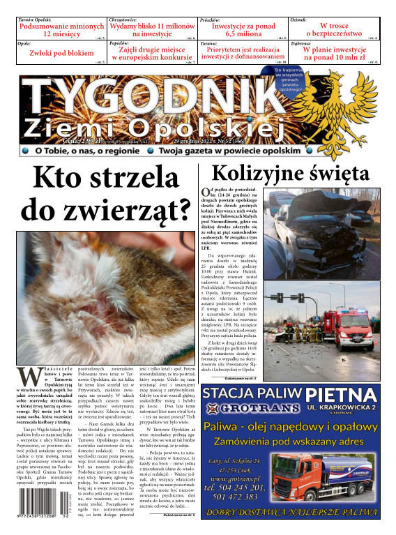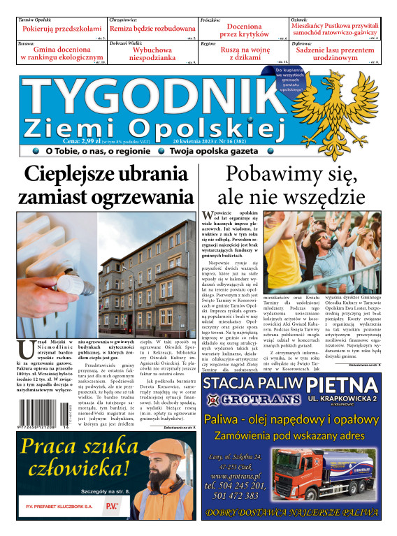 Tygodnik Ziemi OpolskiejGazeta „TYGODNIK Ziemi Opolskiej”- ukazuje się na terenie gmin powiatu opolskiego. To lider wśród tygodników lokalnych w powiecie opolskim. Ukazuje się w każdy czwartek i opisuje wydarzenia związane z miastem Opole jak i powiatem opolskim. Dostępna jest w Opolu oraz gminach powiatu opolskiego. Nakład TZO wynosi ponad 4400 szt., sprzedaż oscyluje w granicach 80-93 %. Grupa docelowa to 150 tys. mieszkańców tychże gmin. Wraz z gazetą aktywny jest również portal www.tygodnikziemiopolskiej.info