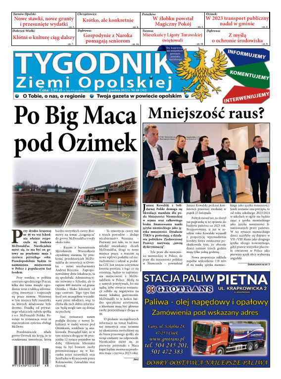 Tygodnik Ziemi OpolskiejGazeta „TYGODNIK Ziemi Opolskiej”- ukazuje się na terenie gmin powiatu opolskiego. To lider wśród tygodników lokalnych w powiecie opolskim. Ukazuje się w każdy czwartek i opisuje wydarzenia związane z miastem Opole jak i powiatem opolskim. Dostępna jest w Opolu oraz gminach powiatu opolskiego. Nakład TZO wynosi ponad 4400 szt., sprzedaż oscyluje w granicach 80-93 %. Grupa docelowa to 150 tys. mieszkańców tychże gmin. Wraz z gazetą aktywny jest również portal www.tygodnikziemiopolskiej.info