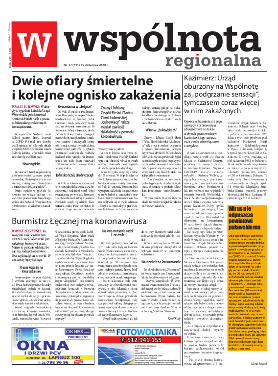 eprasa.pl ▸ Wspólnota Łęczyńska ▸ Wspólnota Łęczyńska 37 (15.09.2020)